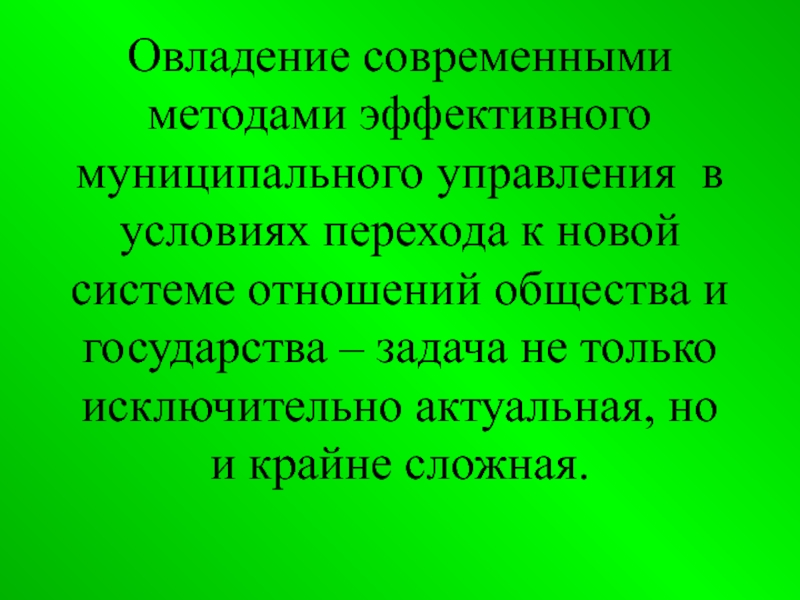 Слайд 2Овладение современными методами эффективного муниципального управления в условиях перехода к новой