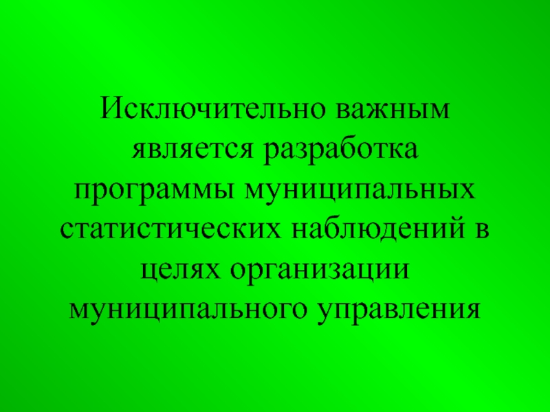 Слайд 36Исключительно важным является разработка программы муниципальных статистических наблюдений в целях организации