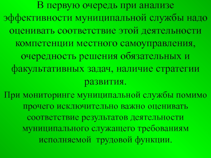 В первую очередь при анализе эффективности муниципальной службы надо оценивать соответствие