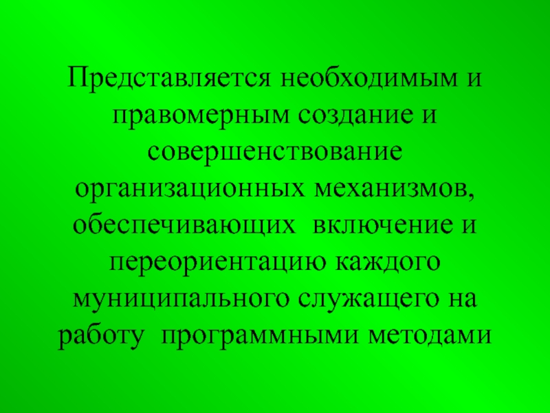 Слайд 4Представляется необходимым и правомерным создание и совершенствование организационных механизмов, обеспечивающих включение