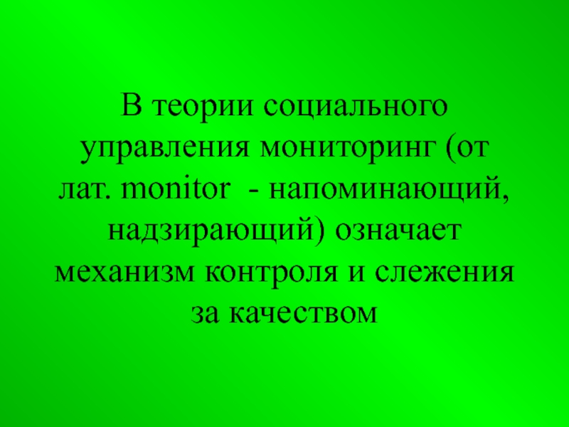 Слайд 7В теории социального управления мониторинг (от лат. monitor - напоминающий, надзирающий)