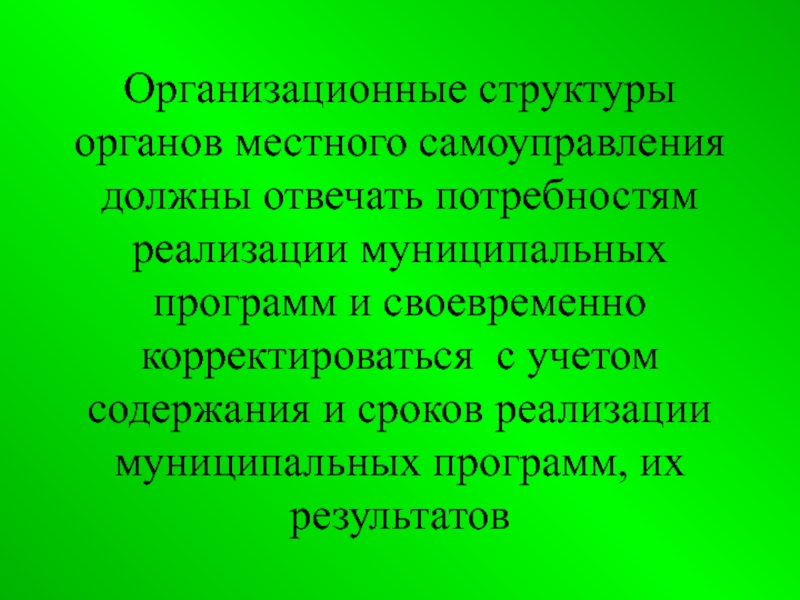 Слайд 5Организационные структуры органов местного самоуправления должны отвечать потребностям реализации муниципальных программ