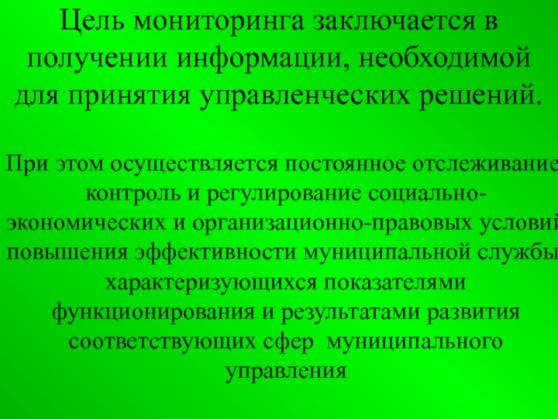 Слайд 9Цель мониторинга заключается в получении информации, необходимой для принятия управленческих решений.