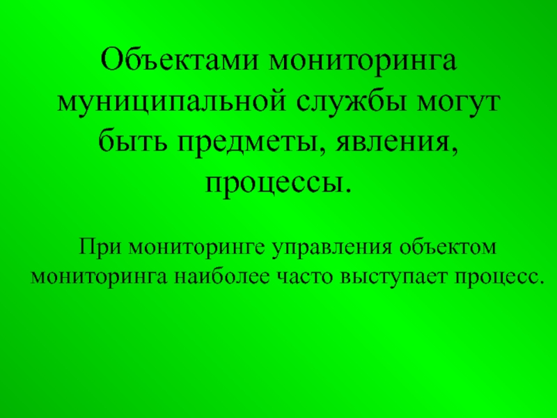 Слайд 26Объектами мониторинга муниципальной службы могут быть предметы, явления, процессы.