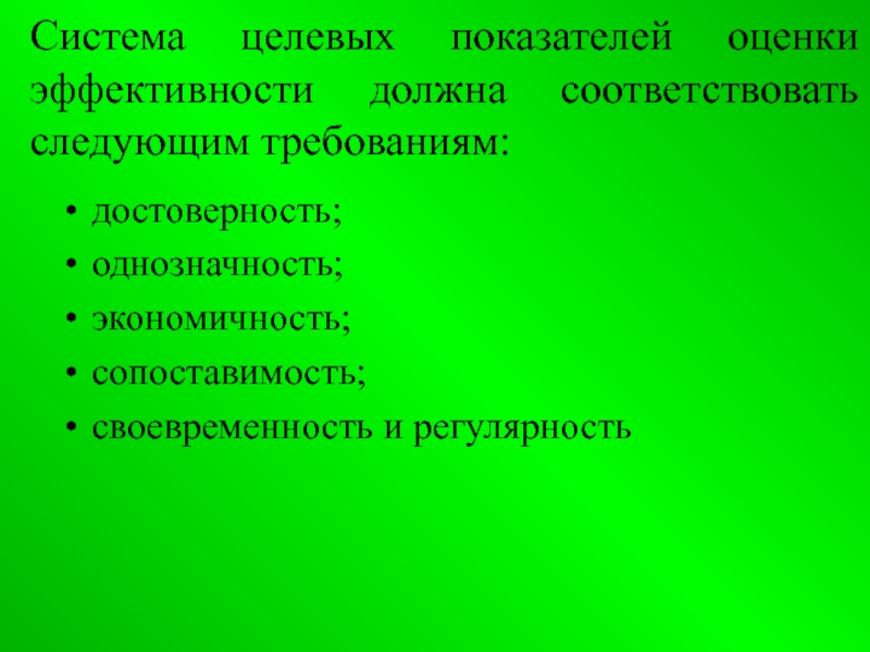 Слайд 38Система целевых показателей оценки эффективности должна соответствовать следующим требованиям: