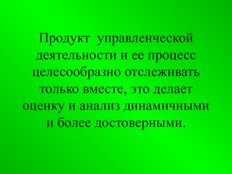 Слайд 35Продукт управленческой деятельности и ее процесс целесообразно отслеживать только вместе, это