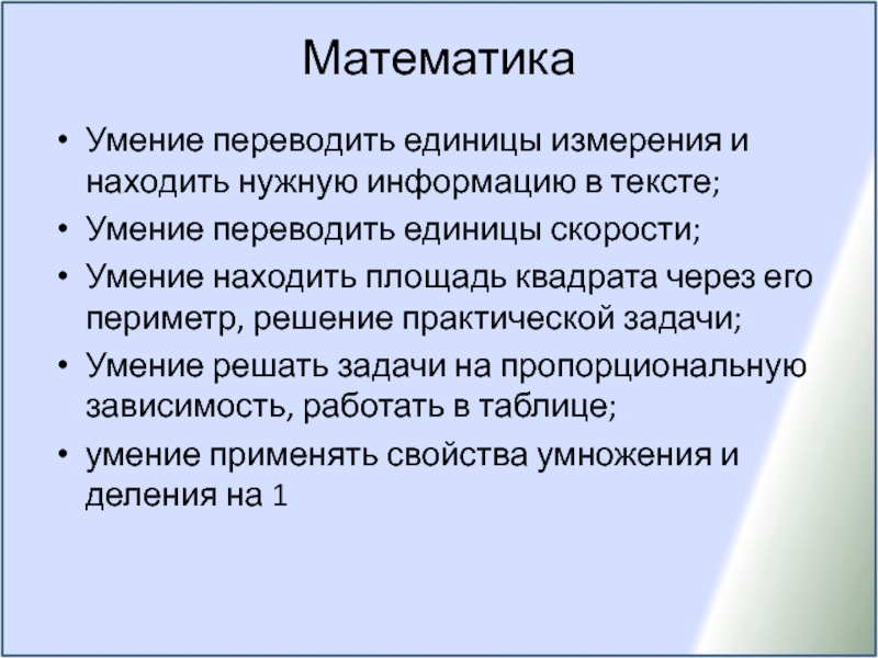 Умение переводить единицы измерения и находить нужную информацию в тексте;
