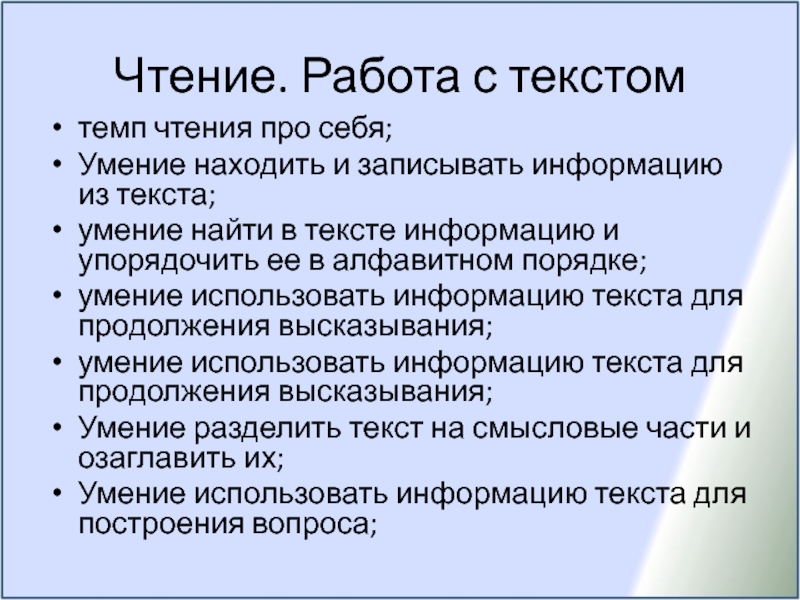 умение найти в тексте информацию и упорядочить ее в алфавитном порядке;