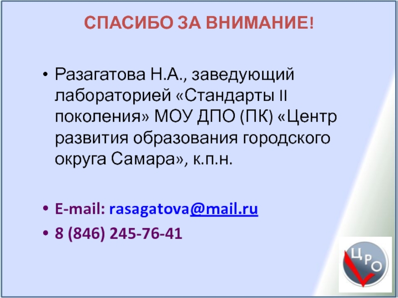 Разагатова Н.А., заведующий лабораторией «Стандарты II поколения» МОУ ДПО