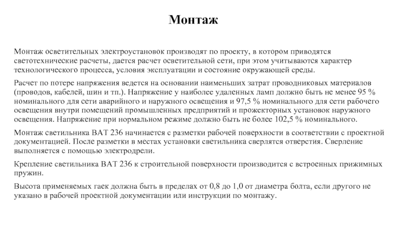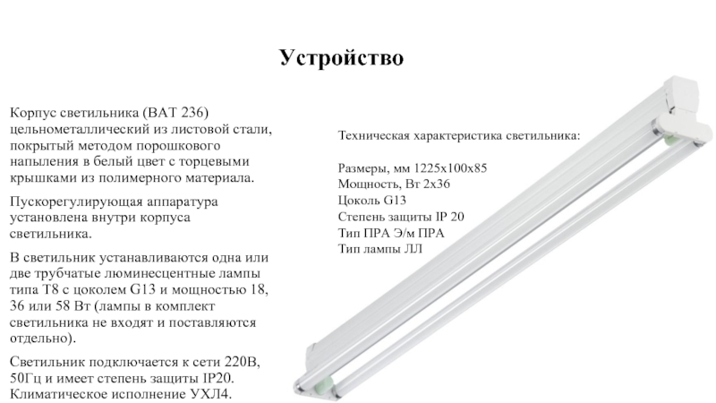 Техническая характеристика светильника: