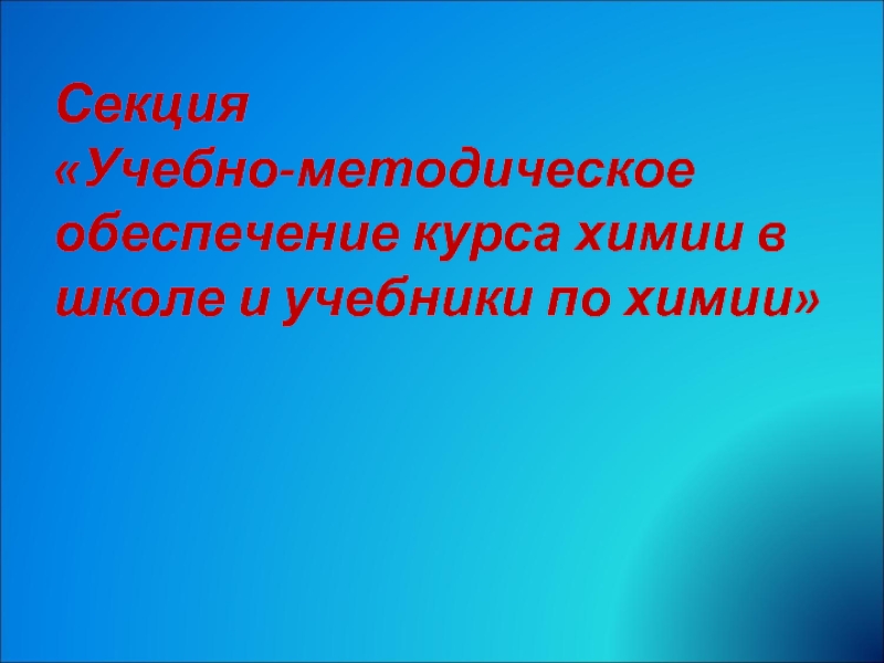 2.Секция «Учебно-методическое обеспечение курса химии в школе и учебники по химии»