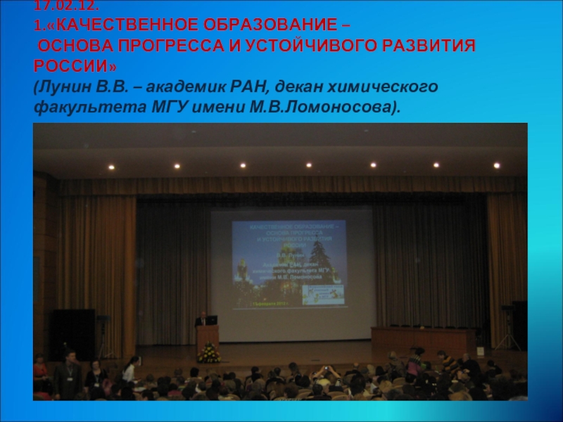 достойные, культурные молодые люди, умеющие грамотно изъясняться, ставить перед собой цели, способные преодолевать преграды, встающие на пути. Специалисты с развитым критическим стилем мышления, с гармонично сформированными рефлексами»), («Цель общего химического образования – создание духовно-творческой личности»), «При подготовке к экзамену должна быть ориентация на учёбу в вуз, а не на поступление в него»),