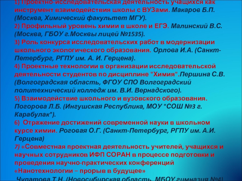 Слайд 161) Проектно-исследовательская деятельность учащихся как инструмент взаимодействия школы с ВУЗами. Макаров