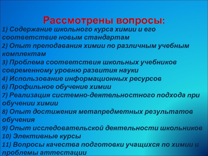 11) Вопросы качества подготовки учащихся по химии и проблемы аттестации