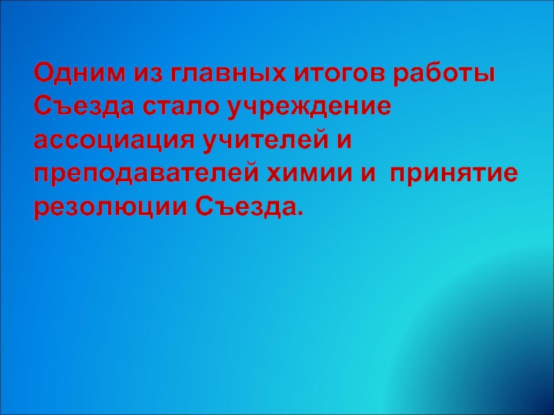 Слайд 21Одним из главных итогов работы Съезда стало учреждение ассоциация учителей и