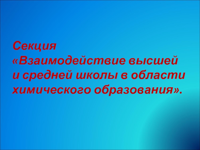 3.Секция «Взаимодействие высшей и средней школы в области химического образования».