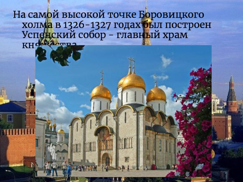 Слайд 8На самой высокой точке Боровицкого холма в 1326-1327 годах был построен