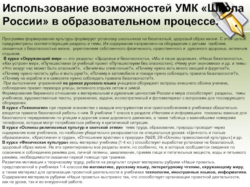 2. Использование возможностей УМК «Школа России» в образовательном процессе.