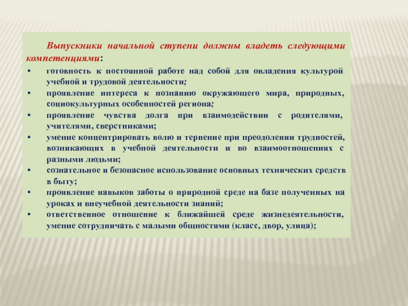 Слайд 44Выпускники начальной ступени должны владеть следующими компетенциями: