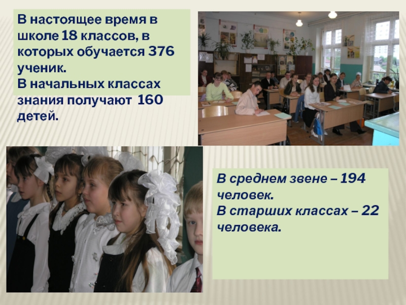 настоящее время в школе 18 классов, в которых обучается 376 ученик.