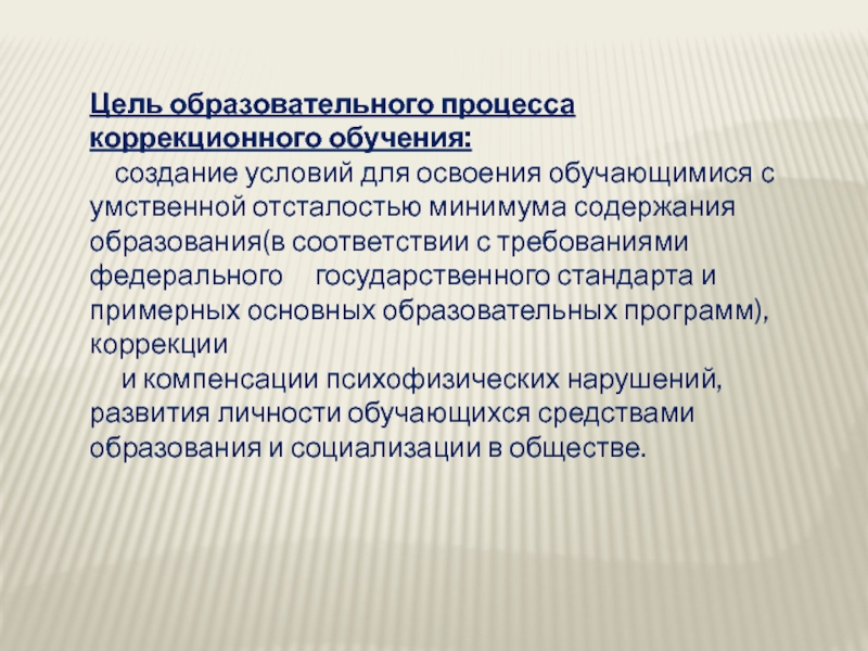 Слайд 8Цель образовательного процесса коррекционного обучения: