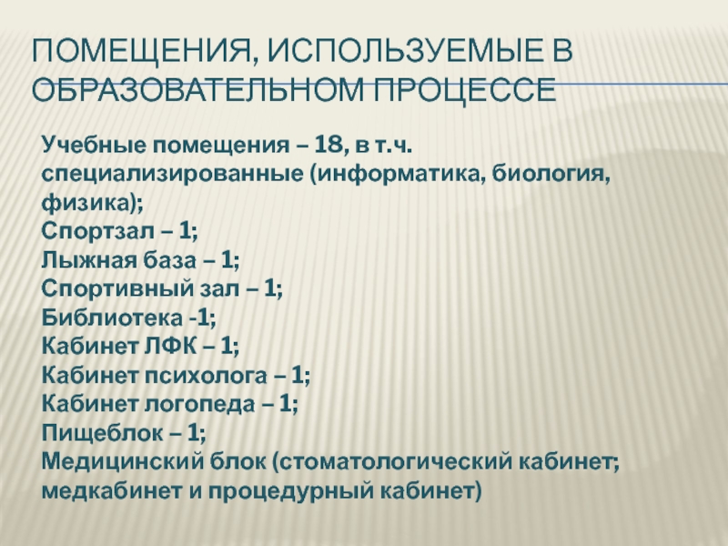 Слайд 27ПОМЕЩЕНИЯ, ИСПОЛЬЗУЕМЫЕ В ОБРАЗОВАТЕЛЬНОМ ПРОЦЕССЕ