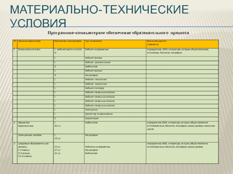 Слайд 26МАТЕРИАЛЬНО-ТЕХНИЧЕСКИЕ УСЛОВИЯ