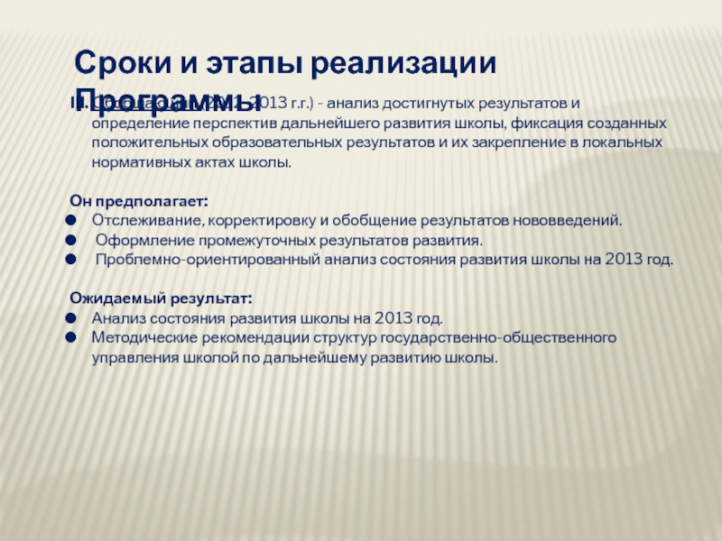 III. Обобщающий (2012-2013 г.г.) - анализ достигнутых