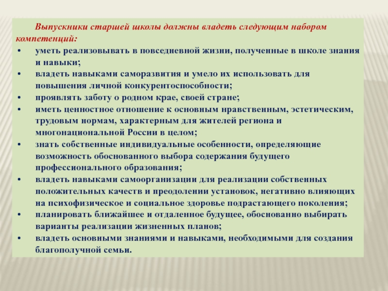 Слайд 46Выпускники старшей школы должны владеть следующим набором компетенций: