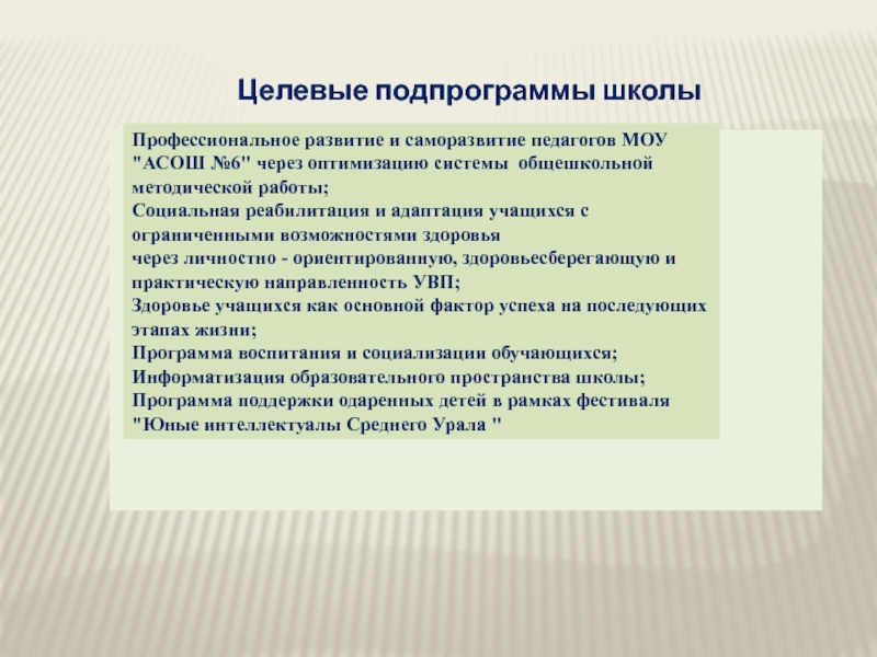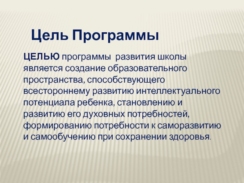ЦЕЛЬЮ программы развития школы является создание образовательного пространства, способствующего всестороннему