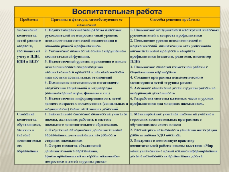 Анализ состояния образовательного процесса в школе с целью выявления противоречий в его содержании и организации с учетом установленных ранее потребностей обучающихся, их родителей и педагогов.