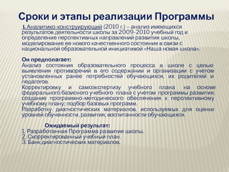 I. Аналитико-конструирующий (2010 г.) – анализ