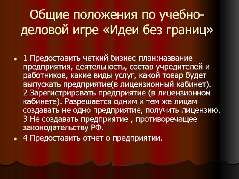 Слайд 19Общие положения по учебно-деловой игре «Идеи без границ»