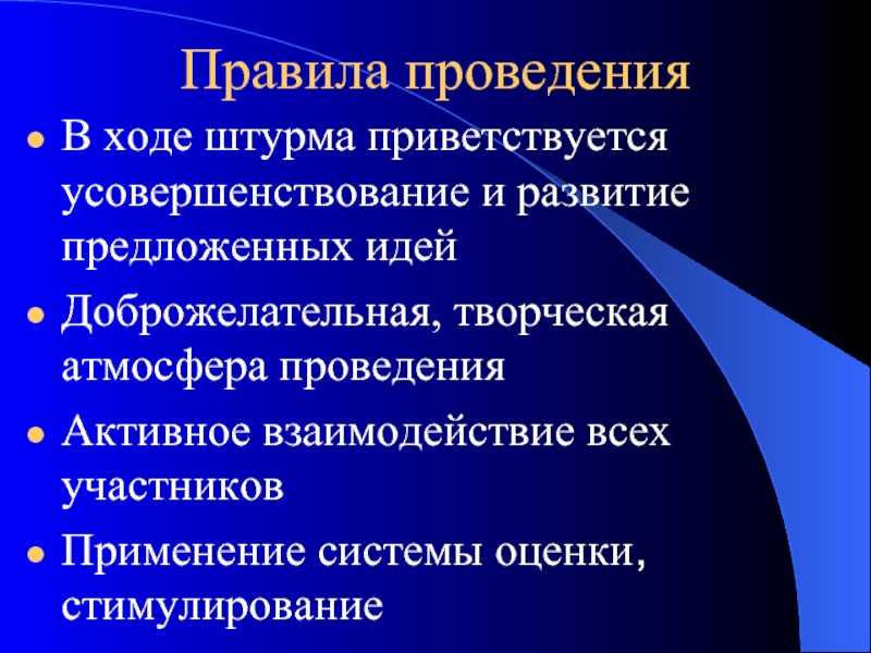 В ходе штурма приветствуется усовершенствование и развитие предложенных идей
