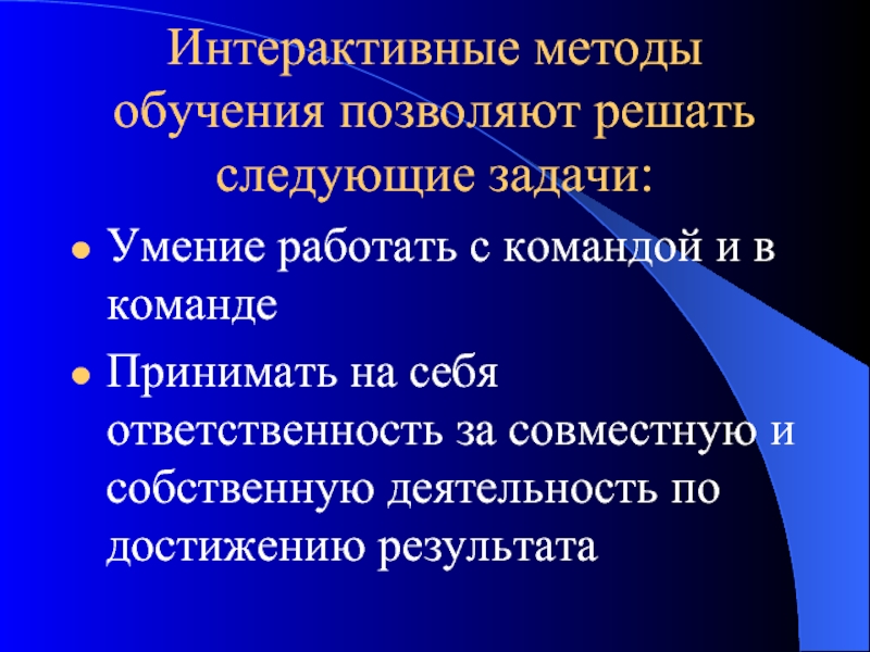 Слайд 8Интерактивные методы обучения позволяют решать следующие задачи: