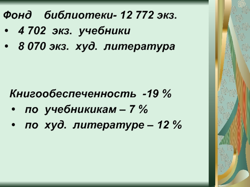 Книгообеспеченность -19 %