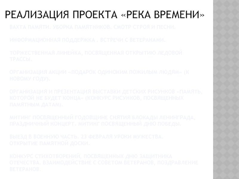 РЕАЛИЗАЦИЯ ПРОЕКТА «РЕКА ВРЕМЕНИ»