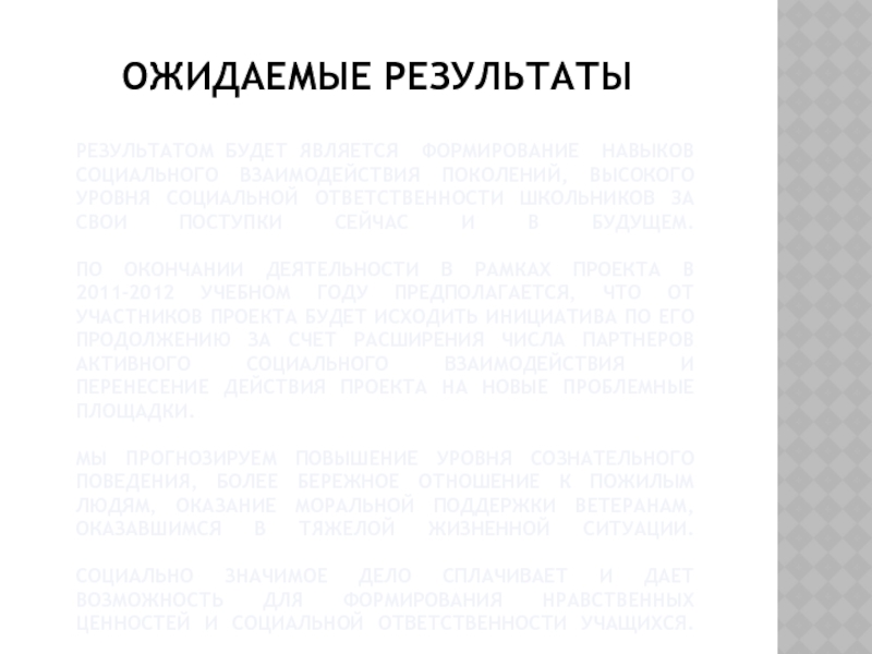 ОЖИДАЕМЫЕ РЕЗУЛЬТАТЫ