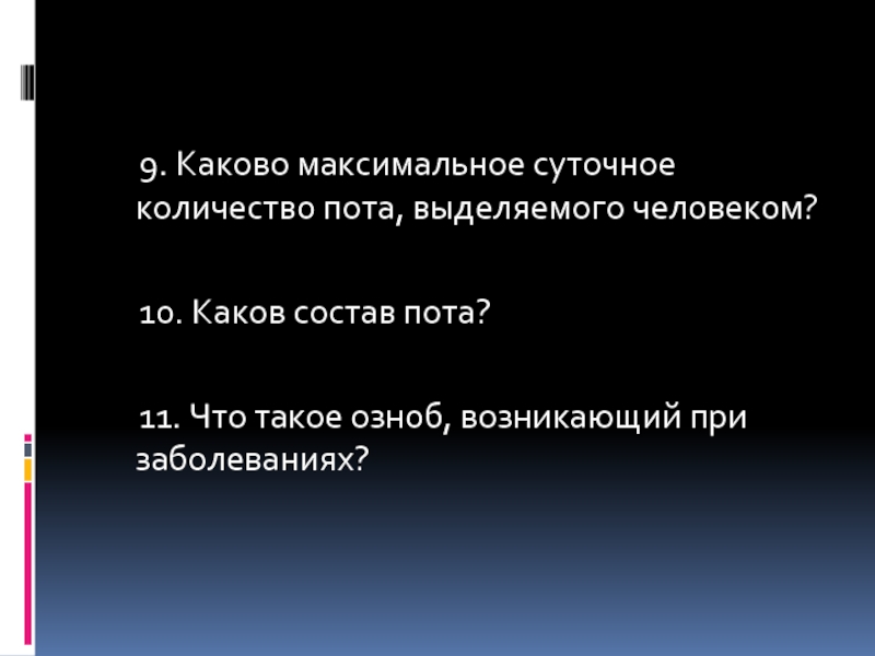 9. Каково максимальное суточное количество пота, выделяемого человеком?