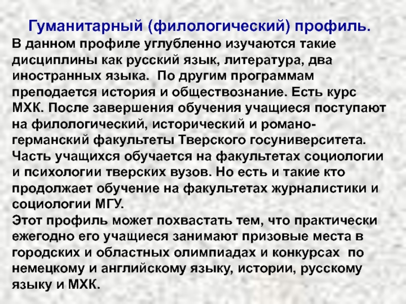 Слайд 42Гуманитарный (филологический) профиль.
