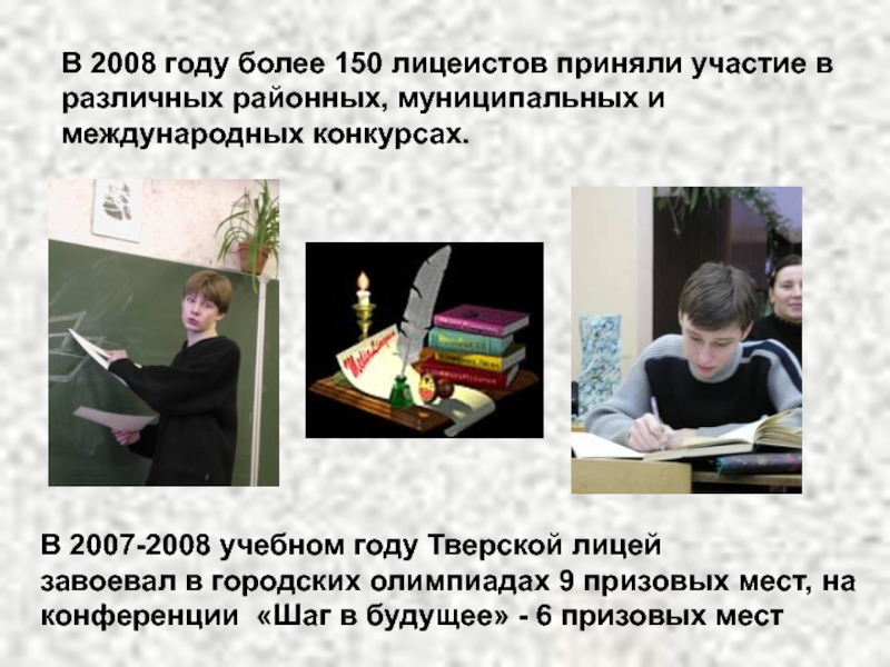 Слайд 11В 2008 году более 150 лицеистов приняли участие в различных районных,