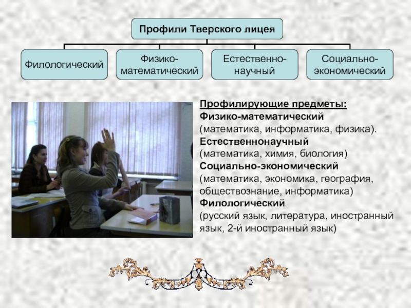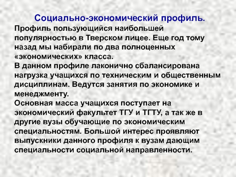 Профиль пользующийся наибольшей популярностью в Тверском лицее. Еще год тому