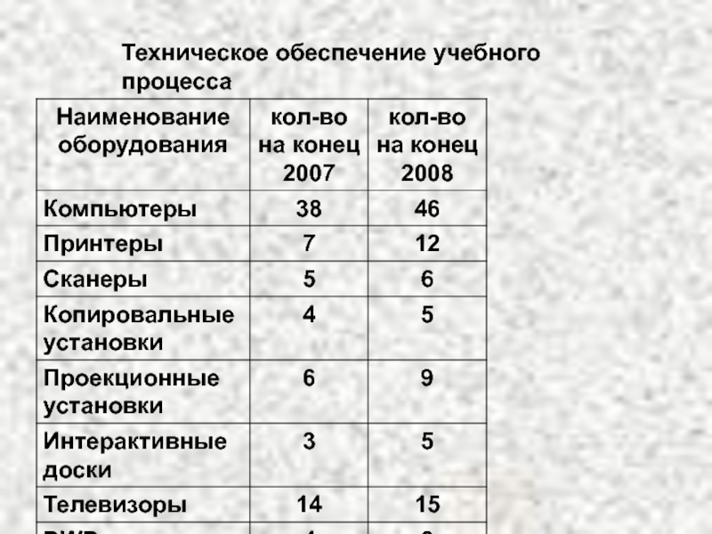 Слайд 22Техническое обеспечение учебного процесса