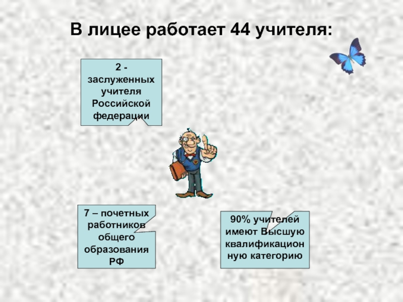 Слайд 30В лицее работает 44 учителя: