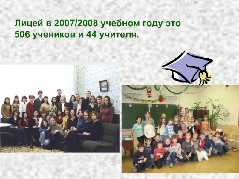 Слайд 6Лицей в 2007/2008 учебном году это 506 учеников и 44 учителя.
