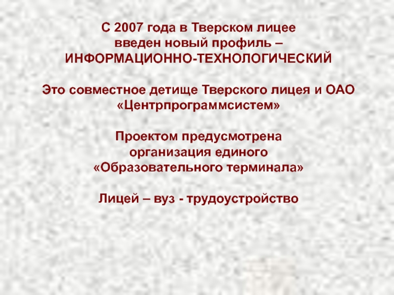 Слайд 40С 2007 года в Тверском лицее