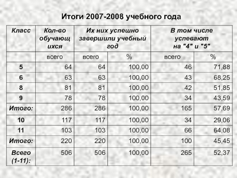 Слайд 8Итоги 2007-2008 учебного года