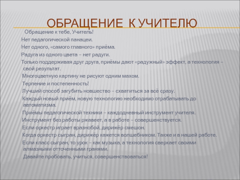 Слайд 10ОБРАЩЕНИЕ К УЧИТЕЛЮ