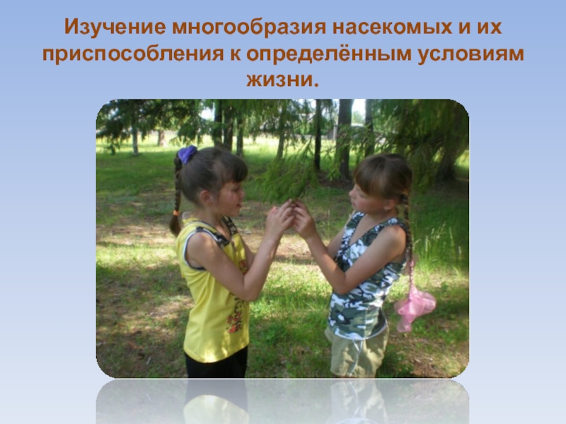 Слайд 18Изучение многообразия насекомых и их приспособления к определённым условиям жизни.