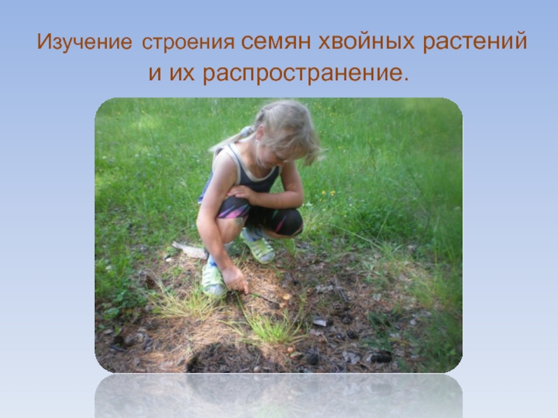 Слайд 15Изучение строения семян хвойных растений и их распространение.